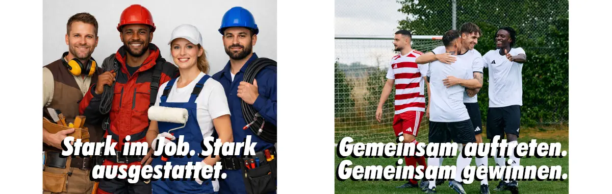 Wir unterstützen euch bei einem einheitlichen Auftreten, egal ob auf dem Sportplatz, am Spielfeldrand, am Arbeitsplatz oder bei Veranstaltungen.